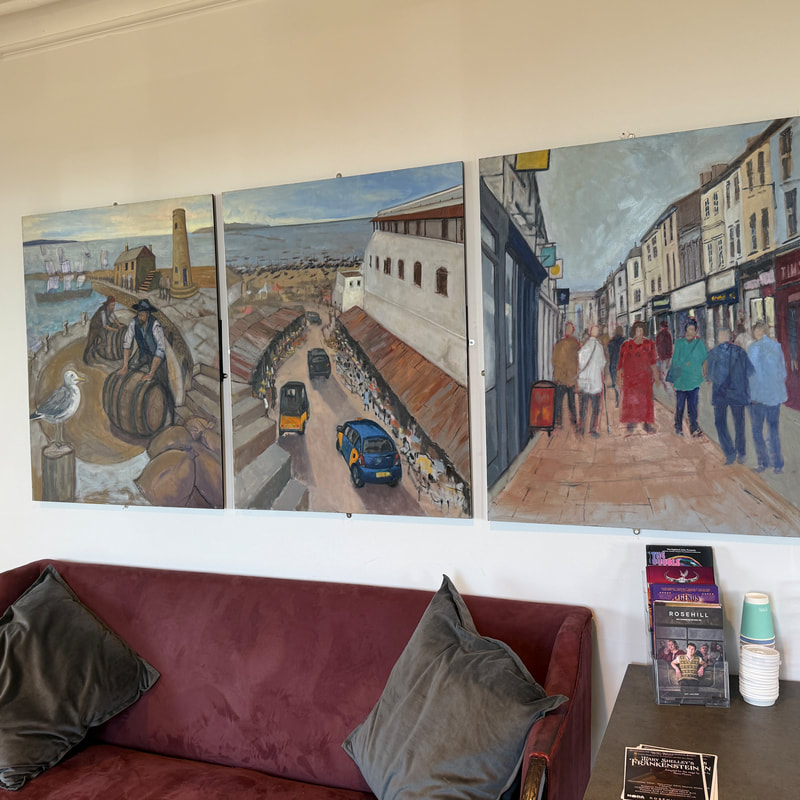 The screening sat within the exhibition, which comprised the triptych created as part of the project, a selection of my own paintings and sketches, and a selection of community created artwork. It felt important to have all of these elements together, each one holding a different part of the project. I don’t think anything quite prepares you for seeing your work like that. On a big screen, in a room full of people who have come to watch it. I felt it! The nerves, the excitement, and a sense of disbelief that this was actually happening. People came!! That meant a lot. Some I knew well, others not quite so well, and some I was meeting for the first time. They chose to be there, to give their time to the work. When the film started, the room became very still. I was aware of people watching, following it, and probably responding in their own way. Afterwards, people spoke about it as reflective and thought provoking. Some said it stayed with them, others said it touched them. For others, it raised questions. That mattered to me, because that is what the work is trying to do. The Q and A afterwards was just as important. We moved into the bar area and sat informally, no stage, no distance, just people gathered around. Hannah kicked things off, and then the questions came, one after the other. Some were direct, others more reflective, but all of them engaged with the work in a genuine way. Then there was the applause... first at the end of the film, and again after the Q and A. I wasn’t expecting that. It’s hard to explain what that feels like, but I have to tell you, it gave me goosebumps! I dedicated the film to my sister Liz, who was here when I started the project and shared my excitement with me, but wasn't able to see it completed. She had a journey of her own which began the day she left us on 20th August 2025. Fragments of Belonging was never meant to be a traditional documentary. It is closer to the way I write. I journal, I blog, I try to work things out through words. Fragments of Belonging is that, but in visual form. A visual essay, bringing together painting, poetry, film, and lived experience. Whitehaven was where it began. A place where I now live, but also a place with a complicated history. Being in the harbour, touching the stone, reimagining history, I was trying to understand what it all holds. Then the work opened out and Ghana became part of it. A return that was personal, shaped by loss, memory, and connection allowed the project to grow into something larger than I first imagined. There is more I’d like to do with it. I want to complete the triangle by visiting Antigua and learning from people who are here because their ancestors survived a perilous journey. The exhibition continues until 24th April, with the film playing on a loop in the gallery. For those who would like to spend time with it, headphones are available. This feels like an important part of where this work goes next. I’m grateful to Rosehill Theatre for their support in funding the project, to everyone who came to the screening, and to all those who have supported me in making this work possible. As always I'd appreciate any comments in the comments section below. It helps the blog reach more people and keeps the conversation going.